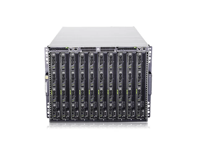 Корпус плоского сервера Huawei E6000 Blade Chassis занимает пространство высотой 8U и представляет собой идеальный вариант размещения серверных модулей. Он может быть установлен в стандартную 19-дюймовую стойку. Корпус включает в себя модули вентиляторов, управления и коммутации, а также резервные PSU.