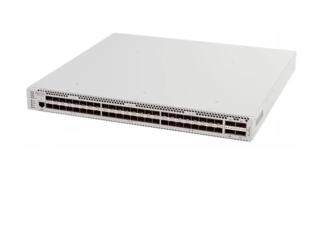• Для быстрой передачи данных используется 48 портов 10GBASE-R (SFP+)/1000BASE-X (SFP). Также здесь предусмотрено 4 разъема 40GBASE-SR4/LR4 (QSFP+), 1 разъем 10/100/1000BASE-T (ООВ) – для управления, 1 разъем USB и 1 консольный порт RS-232 (RJ-45) для внеполосного подключения устройств.
