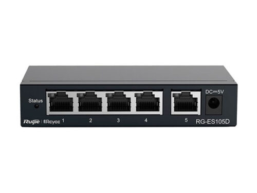 Ruijie Reyee RG-ES105D - это неуправляемый коммутатор уровня Layer 1 со скоростью коммутации 1Гб/с, таблица MAC-адресов составляет 1K, содержит 5 портов 10/100 Мб/с RJ-45.