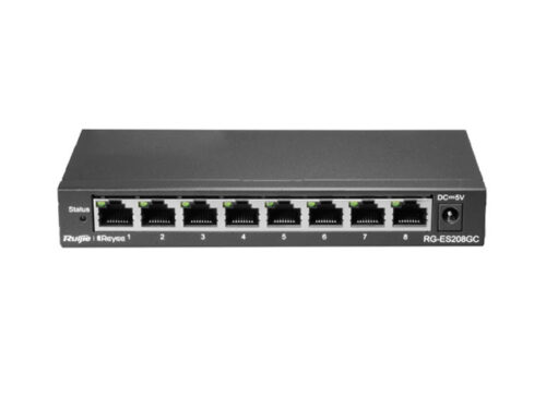 Ruijie Reyee RG-ES208GC - это гигабитный управляемый облаком коммутатор без PoE. 8 портов 10/100/1000Base-T, скорость пересылки 11,90 млн пакетов/с, коммутационная ёмкость 16 Гбит/с, без вентилятора