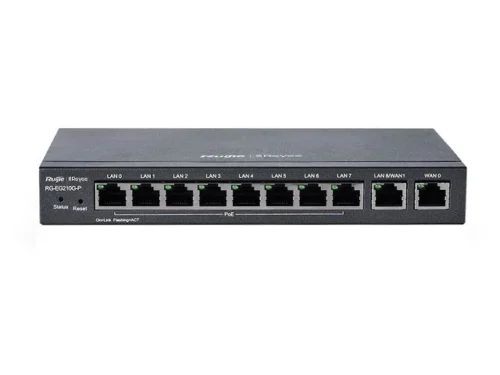 - Обе версии маршрутизатора Ruijie Reyee EG200G оснащены гигабитными портами, позволяющими быстро и без задержек передавать данные. Пропускная способность систем при отключенном управлении потоком составит 600 м, при включенном – 500м.