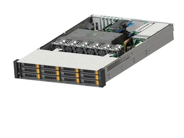 Универсальный двухпроцессорный сервер 2U, обеспечивающий баланс между требованиями по установке плат расширения и доступной емкости дискового хранения.