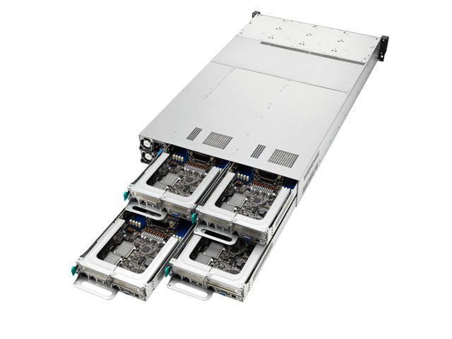 Сервер высокой плотности ASUS RS720Q-E11-RS8U на базе масштабируемых процессоров Intel Xeon 4-го поколения и поддерживающий до 16 модулей DIMM, 2 слота PCIe 5.0, 8 NVMe и две 10G LAN на узел