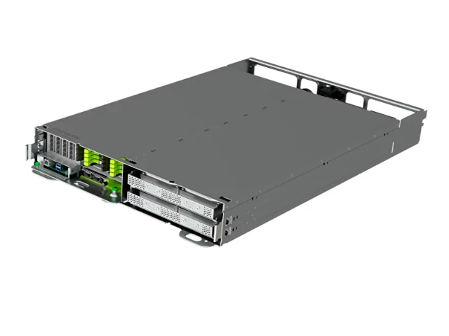 - Система имеет компактные размеры. Форм-фактор шасси – 2U. Размещается она в шкафу OCP Rack v2.