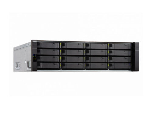 Сетевое хранилище QNAP ES1640dc-v2-E5-96G, 2 контроллера, 16 слотов 3,5 или 2,5 дюбйма с интерфейсом SAS 12/6 Гбит/с под HDD или SSD, стоечное исполнение Rack 3U, 2 источника питания, 2 процессора Intel Xeon E5-2420 v3 6 ядер с частотой 2,2 ГГц, оперативная память DDR3 96 Гб, операционная система QES.
