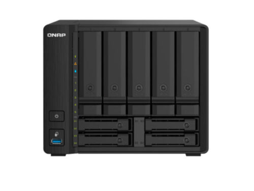 Сетевой накопитель QNAP TS-932PX-4G, дисковый массив имеет 5 отсеков 3,5/2,5 дюйма и 4 отсека 2,5 дюйма, 2 порта 2,5 GbE BASE-T, 2 порта 10 GbE SFP+, настольный форм-фактор. Процессор ARM Cortex-A57 Annapurna Labs AL-324 4 ядра с частотой 1,7 ГГц, оперативная память 4 Гбайт DDR4 с возможностью расширения до 16 Гб. Операционная система QTS.