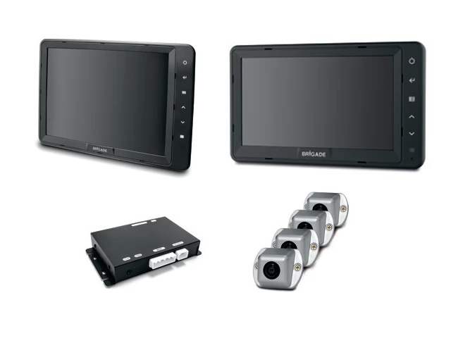 Системы кругового обзора Brigade Backeye BN360 – это усовершенствованное оборудование от британского производителя. В их структуру входит 4 камеры и монитор, на который выводится информация с 19 ракурсов. Устройство располагается в кабине и позволяет водителю получать полную картину происходящего вокруг транспортного средства.
