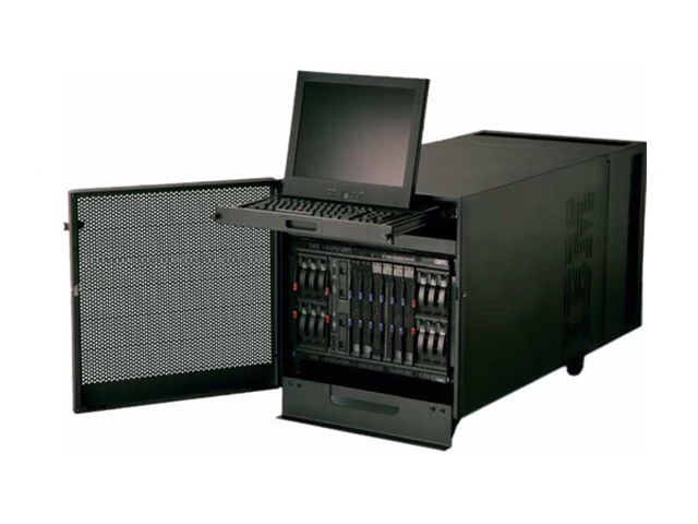 - Акустический модуль: Вместе с коммуникационным шкафом идет также акустический модуль, который позволяет сделать работу вашего блейд-центра тихой в условиях офисной обстановки, при этом обеспечивая легкий доступ к компонентам центра.